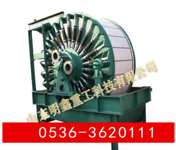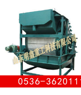GZC真空永磁過濾機(jī)為上部給料的筒型外濾式真空永磁過濾機(jī),主要適用于對較粗顆粒強(qiáng)磁性物料的脫水。 筒體內(nèi)部裝有鍶鐵氧體****磁系,可促使磁性顆粒迅速吸附到濾布表面,磁濾機(jī)主要用于粒度較粗的強(qiáng)磁性礦物精礦礦漿的脫水,由于是上部給料,使得濾餅中精礦按粒度分層的效果更加明顯,當(dāng)磁性精礦形成濾餅時,顆粒同時受到重力和磁力的作用,粗顆粒精礦比細(xì)顆粒精礦向濾布運動的快,精粒首先接觸濾布,故濾餅的透氣性好,而且礦漿中磁性顆粒在磁力吸引下呈放射狀布于圓筒表面,并由于磁系極性變化而產(chǎn)生磁攪動作用,這都成為濾餅易脫水的有利條件,使得濾餅厚且透氣性好,顯著的提高了生產(chǎn)率,與同規(guī)格的筒形真空過濾機(jī)相比,其效率提高三倍以上。 該機(jī)礦漿中固相顆粒的比磁化系數(shù)不低于3000*10-6厘米/克,顆粒粒度為0.15-0.8毫米。給料濃度60%。 |